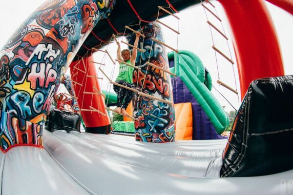 Ce château gonflable en location mesure 265m sur 7m sur 4m de haut, il est idéal jusqu’à 400 personnes en même temps. Cette installation gonflable amusera les petits et les grands grâce à son parcours géant mesurant 265 M!!!. Ils pourront s’amuser dans cette structure gonflable en toute sécurité. Le château gonflable n’est pas couvert par un toit. Le château gonflable est fourni souffleries / allonge électrique/piquet de sécurité/sangle d’arrimage. Il suffit de le brancher et le tout est prêt à l’emploi en une journée ! Le prix prend en compte le montage et le démontage.