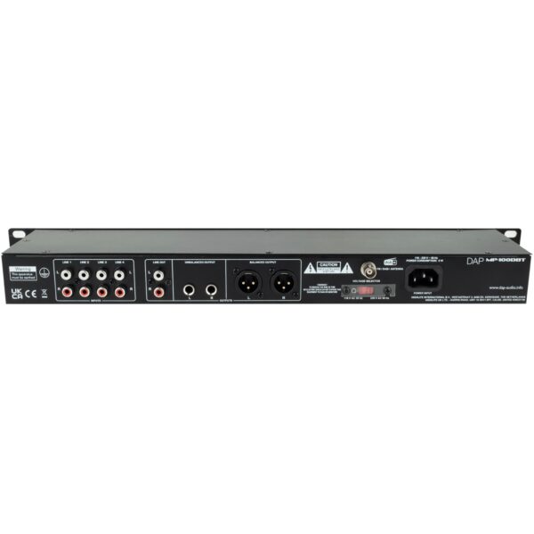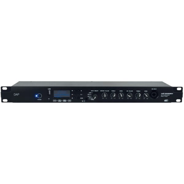 Le DAP MP-100DBT est un lecteur média compact au format rack 19″ (1U), idéal pour la diffusion musicale lors d’événements. Il permet d’écouter la radio DAB+ et FM, de diffuser de la musique en Bluetooth ou de lire des fichiers audio via clé USB.
