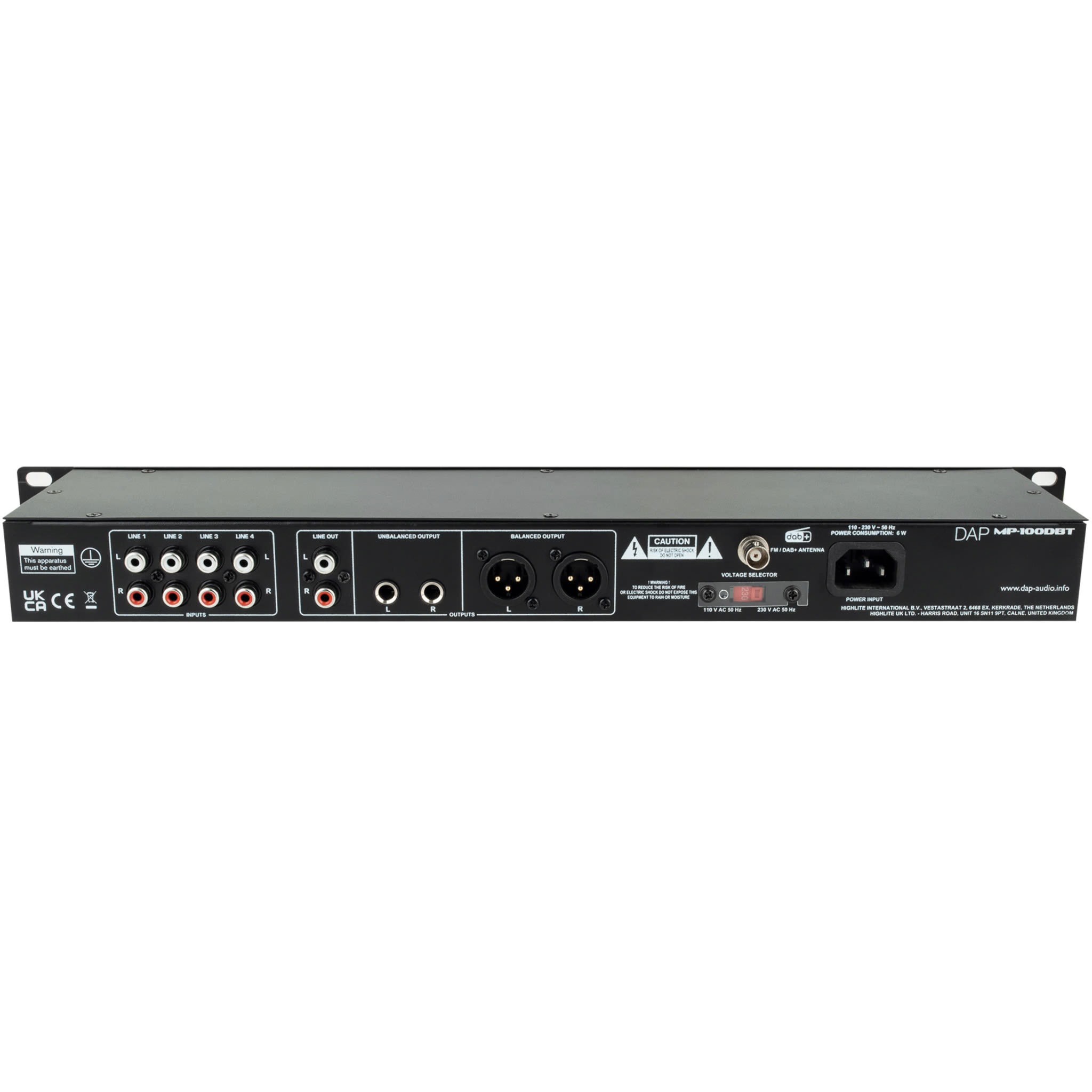 Le DAP MP-100DBT est un lecteur média compact au format rack 19″ (1U), idéal pour la diffusion musicale lors d’événements. Il permet d’écouter la radio DAB+ et FM, de diffuser de la musique en Bluetooth ou de lire des fichiers audio via clé USB.